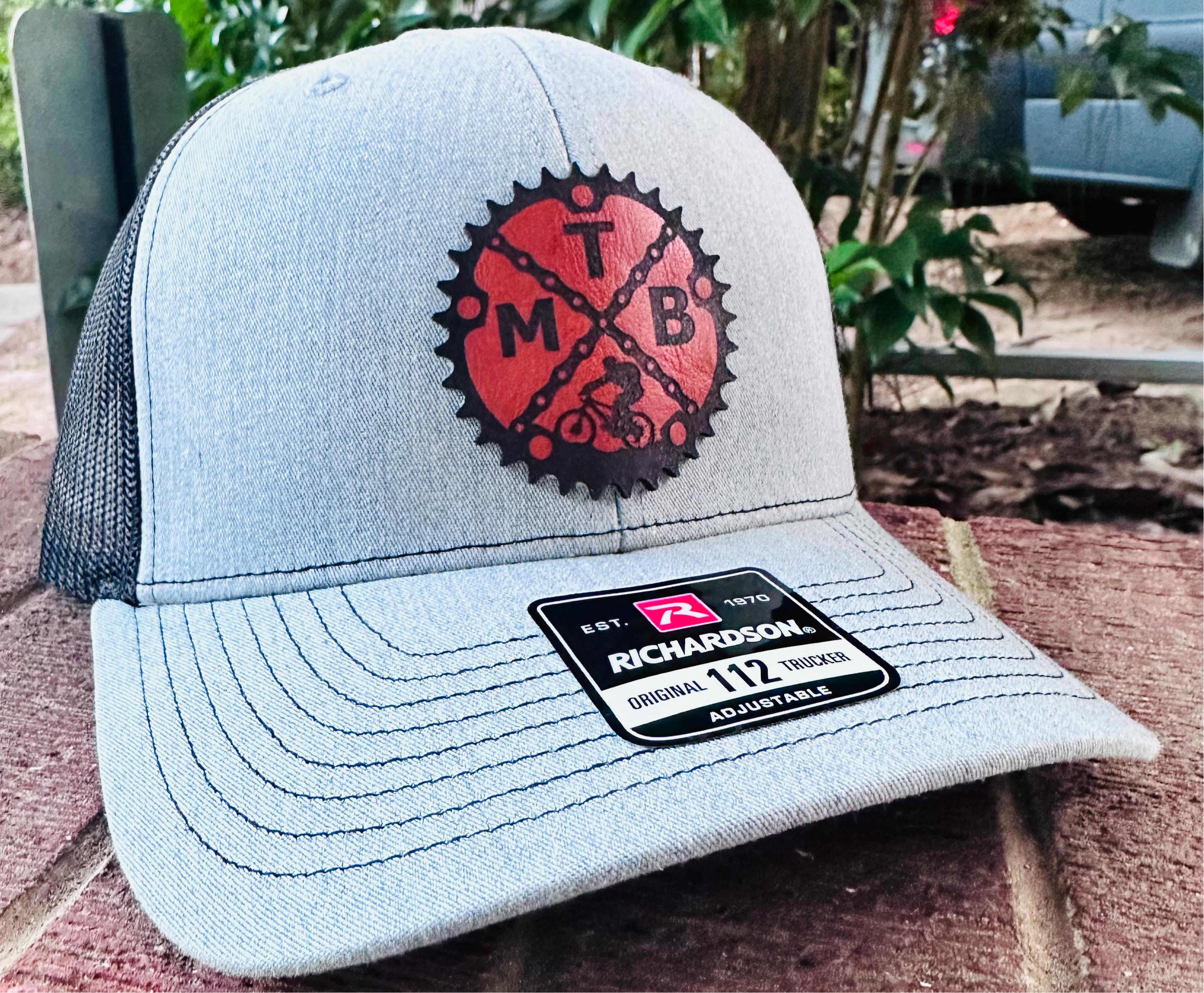 Mountain Bike Leather Patch Hat – Richardson 112 Trucker Cap – MTB Gift for Dad or Trail Rider