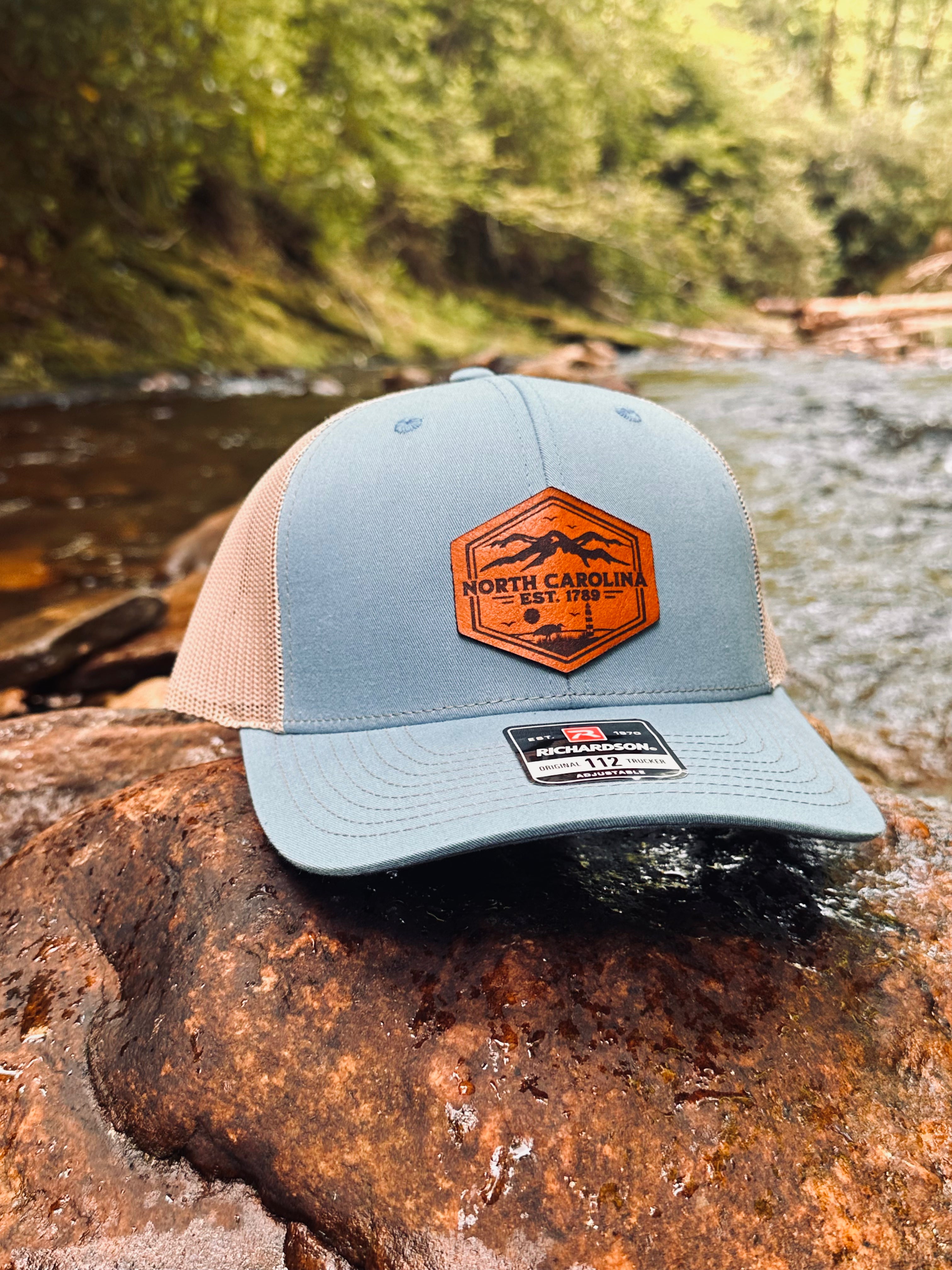 Represent North Carolina with our Leather Patch Hat on Richardson 112